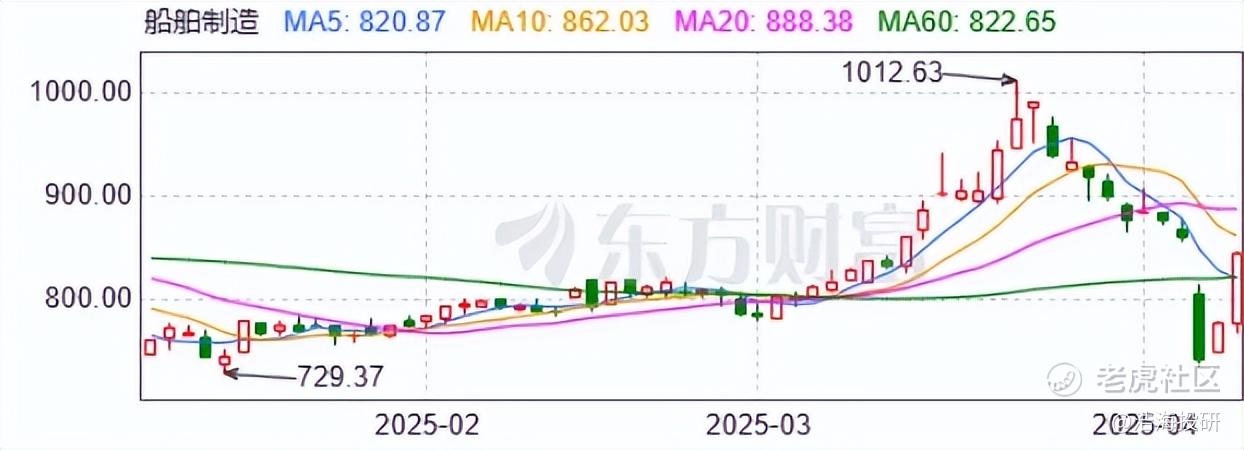 在这样的背景下,有一个板块最近突然迎来了大涨,那就是船舶板块。比如 $中船防务(600685)$ 直接迎来了一波涨停, $天海防务(300008)$ 、 $江龙船艇(300589)$ 等玩家的股价也都纷纷飘红。