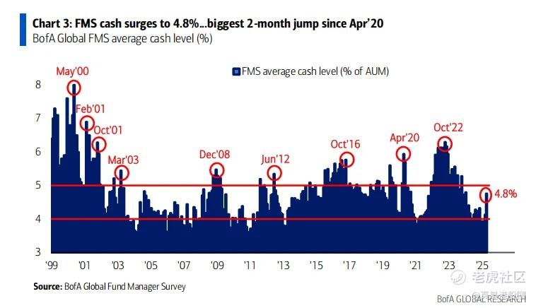 全球机构现金激增,自2020年4月以来4.8%...最大的2个月上涨 。