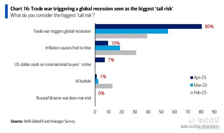 有80%的人认为关税引发全球衰退是最大的尾部风险。