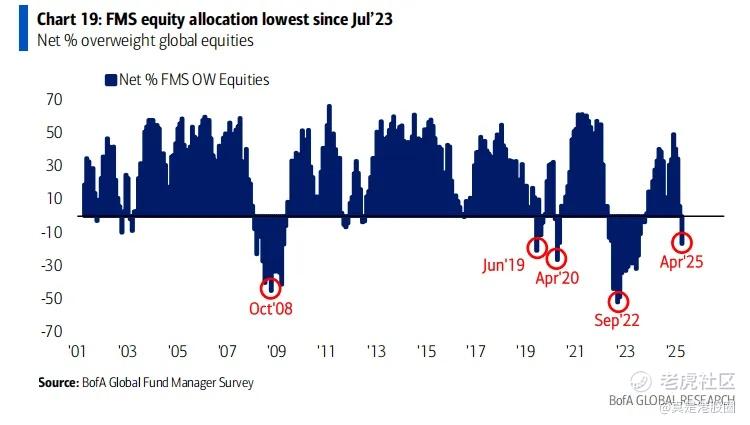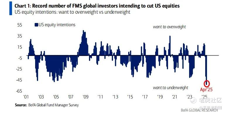 Bofa:市场情绪急转直下,投资者的悲观程度飙升到2009年金融危机以来最严重的水平之一,有接近一半的受访者认为全球经济将陷入衰退,FMS全球投资者打算减仓美国股票的记录数量创20多年来最高。