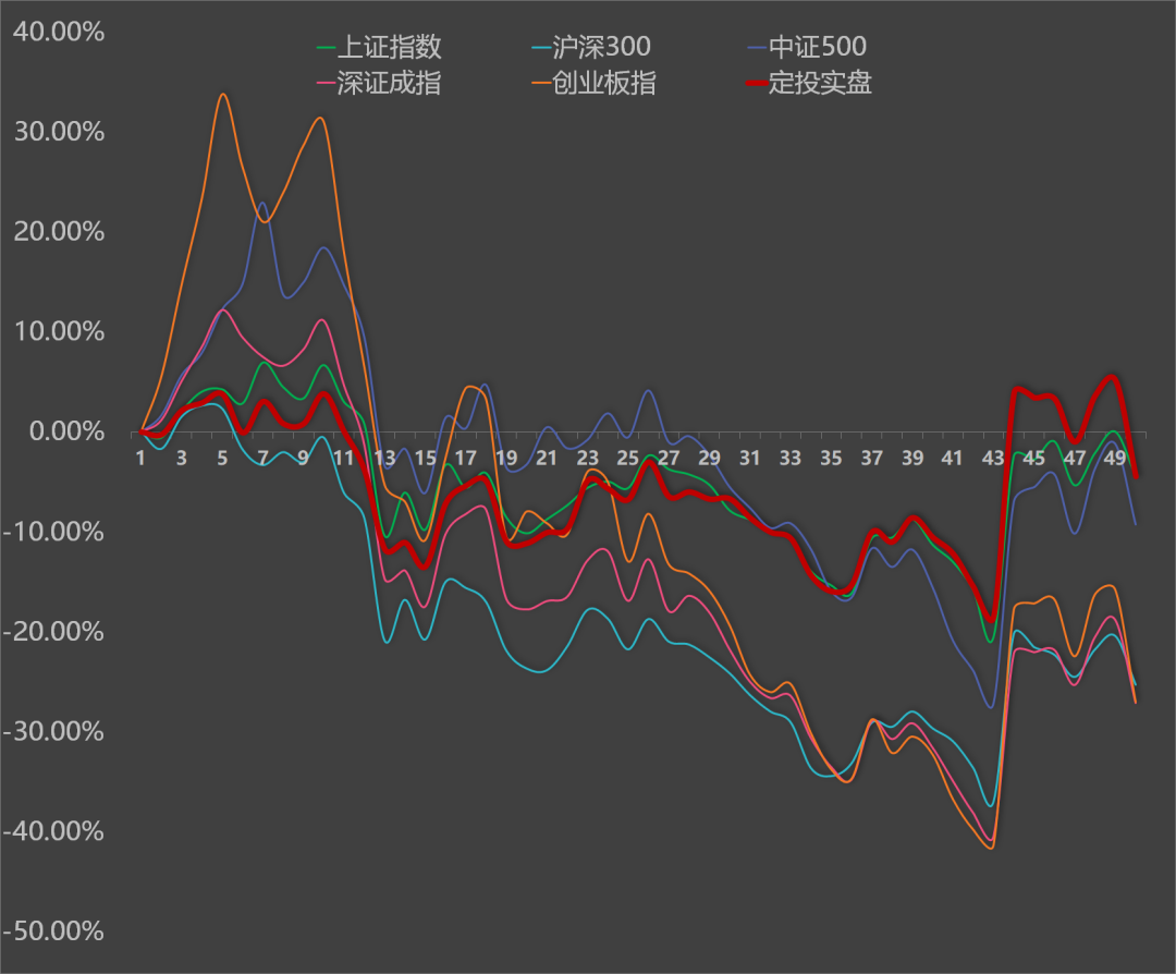 本期收益率为-4.47%,和上证指数的收益不相上下,跑赢其余所有主流指数。