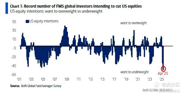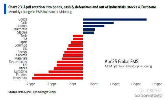 除了这个突发事件外,还有一个美银四月基金经理调查的研报在美股交易圈里面广泛流传。