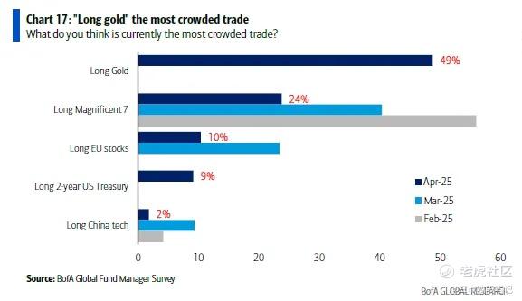 其中,做多黄金已经成为超越做多美股7巨头的全球最拥挤交易。