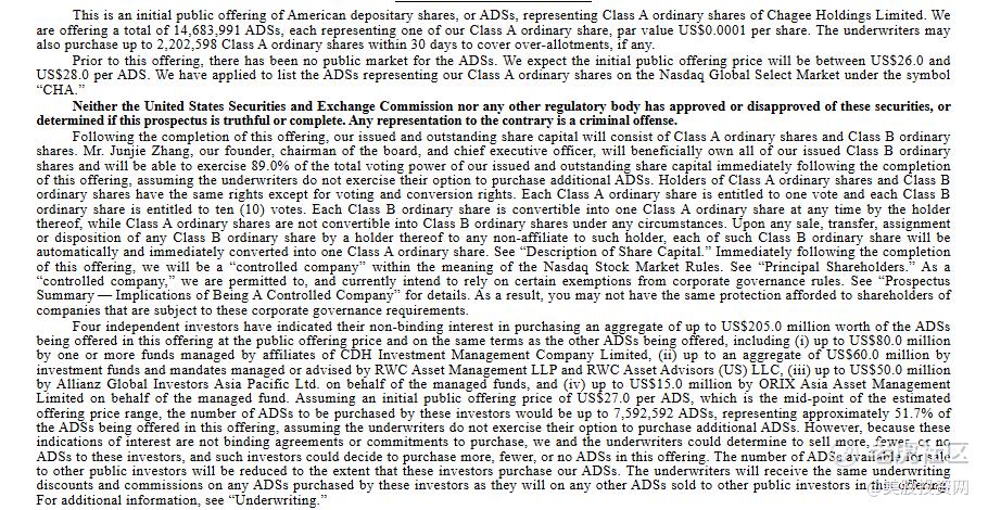 4月10日, $霸王茶姬(CHA)$ 更新美股IPO招股文件,寻求上市募资4.11亿美元。公司将以26-28美元的价格发行1,468万份美国存托(ADS)。按照文件中提供的已发行股数量,发行价区间高端对应的该公司市值约33亿美元。