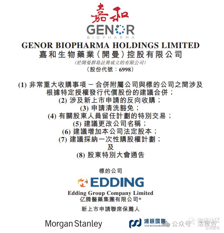 LiveReport获悉,早在2020年10月7日就上市的嘉和生物-B(6998.HK)于2025年4月15日再次提交上市申请,本次主要涉及与「亿腾医药」的非常重大收购事项、新上市申请的反向收购、申请清洗豁免及建议更改公司名称等。