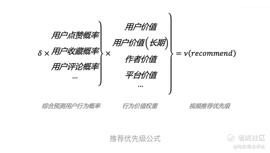 同时抖音还有自己的价值模型评估,简单来说,通过价值模型,对用户的互动行为进行价值计算,并通过不断调整参数,对各类价值进行加权。不仅会关注内容本身以及用户反馈,还会考虑到作者收益以及平台生态。