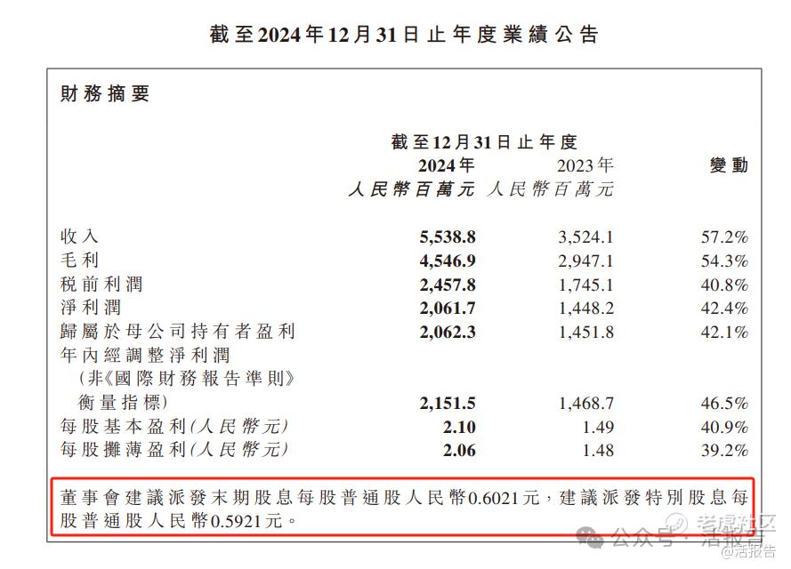 据3月底公布的财报数据,巨子生物2024年收入约为55.93亿人民币,同比增长57.2%,净利润约为20.62亿人民币,同比增长42.4%。