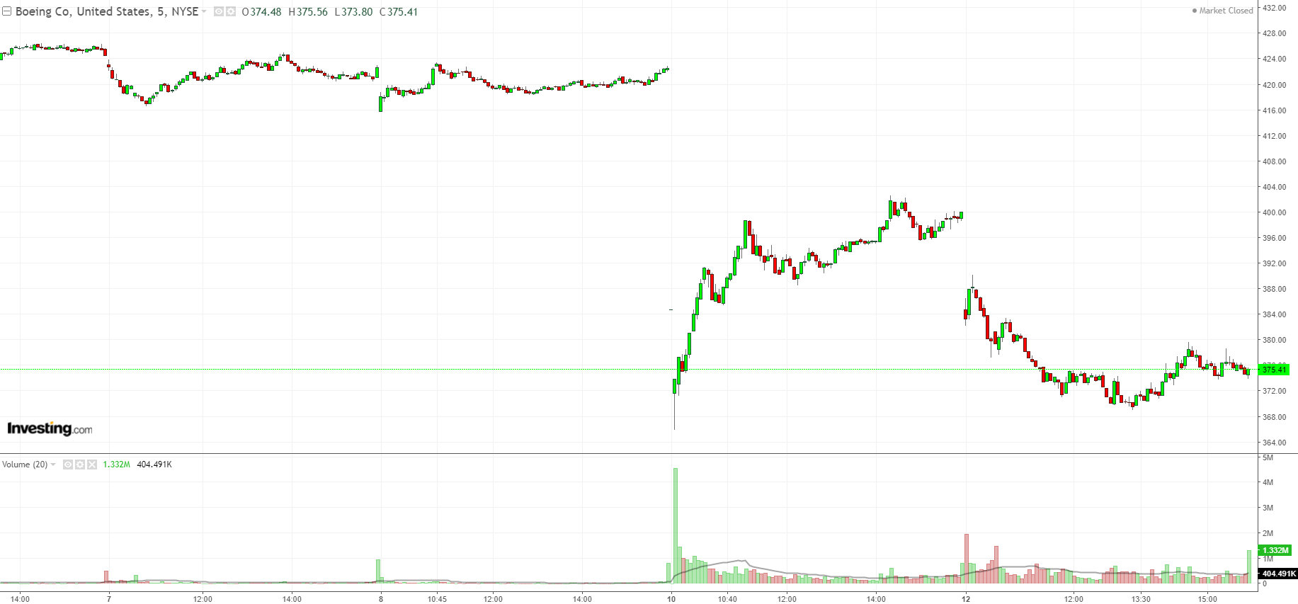 BA 5 Minute Chart,行情来源:英为财情Investing.com