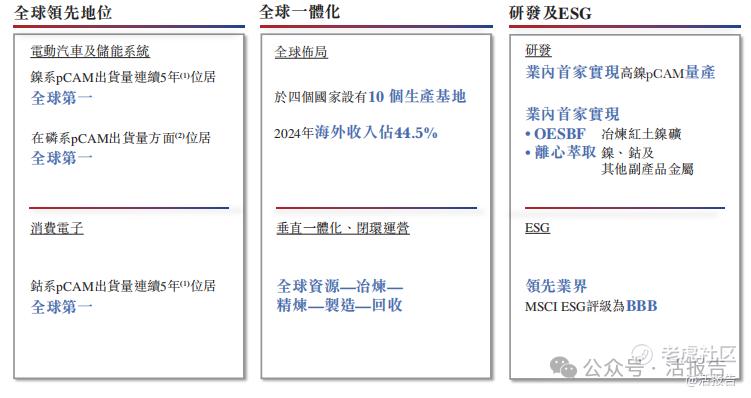 公司是自2020年以来,镍系和钴系的锂离子电池正极活性材料前驱体(pCAM)方面连续五年的全球出货量领导者,且于2025年第一季度,公司也是全球外销市场出货量第一的磷系pCAM供应商。