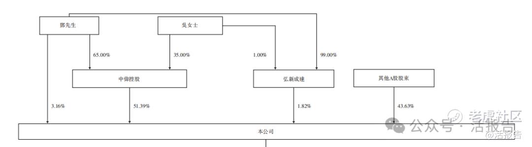 邓先生与配偶吴女士合共持有已发行股份总数约56.37%,其中包括邓先生直接持有的约3.16%权益、由中伟控股(为邓先生与吴女士控制的公司)间接持有的约51.39%权益,以及由弘新成达(一家有限合伙企业,由吴女士作为普通合伙人拥有1.00%及邓先生作为有限合伙人拥有99.00%)间接持有的约1.82%权益。