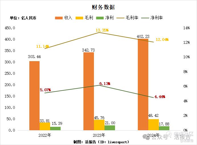 毛利分别约为人民币33.81亿元、45.76亿元、48.42亿元,年复合增长率为19.68%;