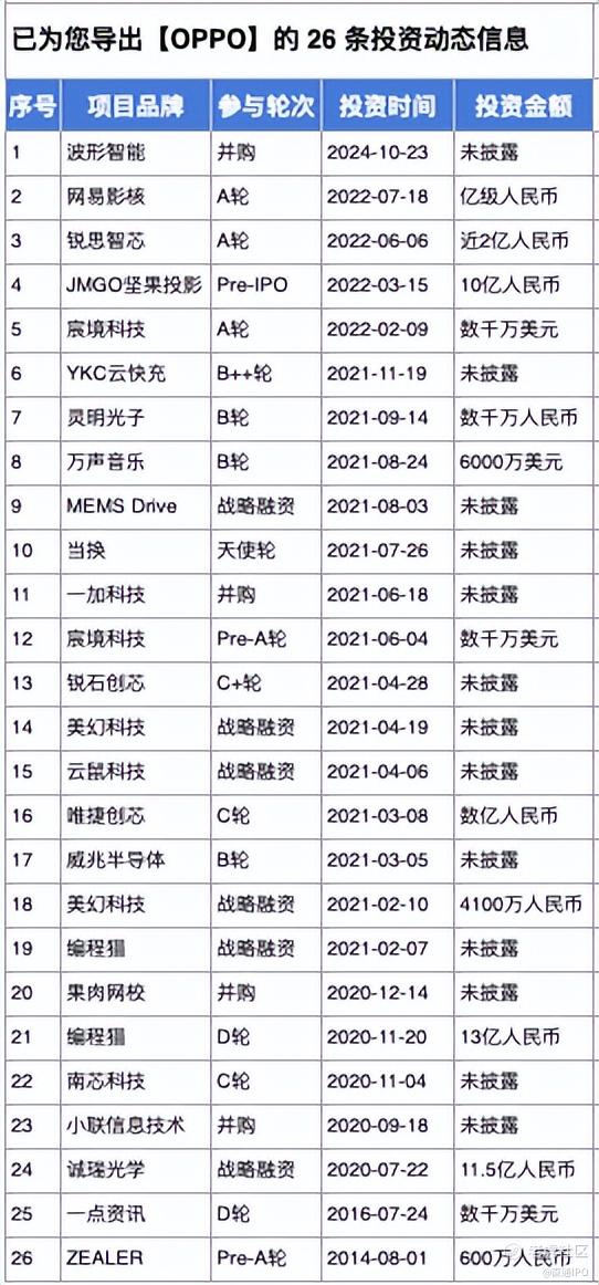 需要注意的是,OPPO已投项目中,欣旺达动力也早在2023年10月,便进行了上市辅导备案,正式启动IPO进程。未来,锐石创芯能否成为OPPO收获的第二个IPO,仍未可知。