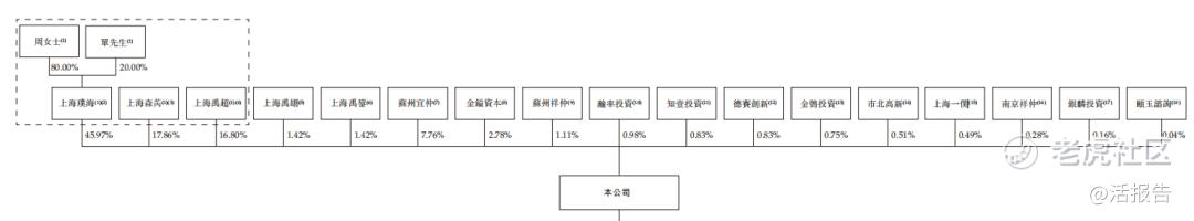 上海璞海持股45.97%;上海森芮持股17.86%;雇员激励平台上海禹超持股16.80%;单卫均先生、周蓉蓉女士夫妇为一致行动人士,合计控制上述约80.64%的投票权。