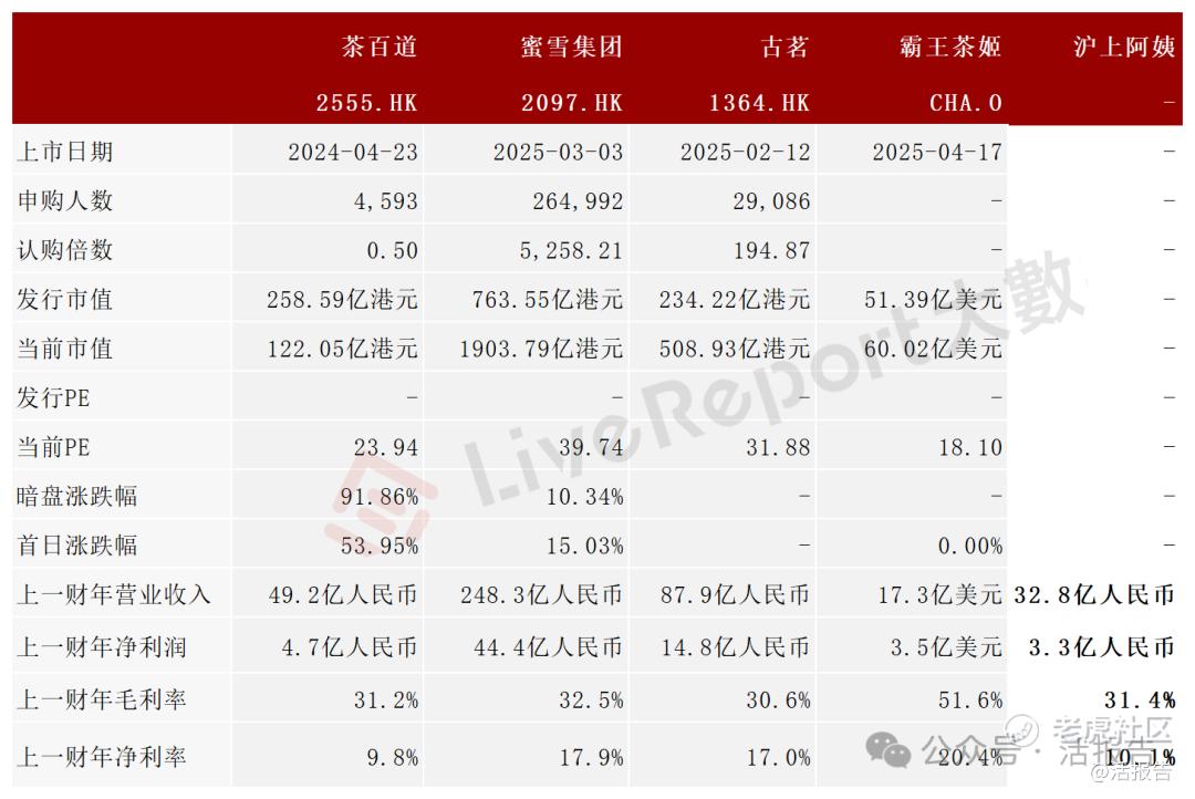 摘要:茶饮企业沪上阿姨于2025年4月23日通过港交所聆讯,拟在香港主板上市,联合保荐人为中信证券、海通国际和东方证券。2024年收入32.85亿,净利3.29亿元,毛利率31.3%。