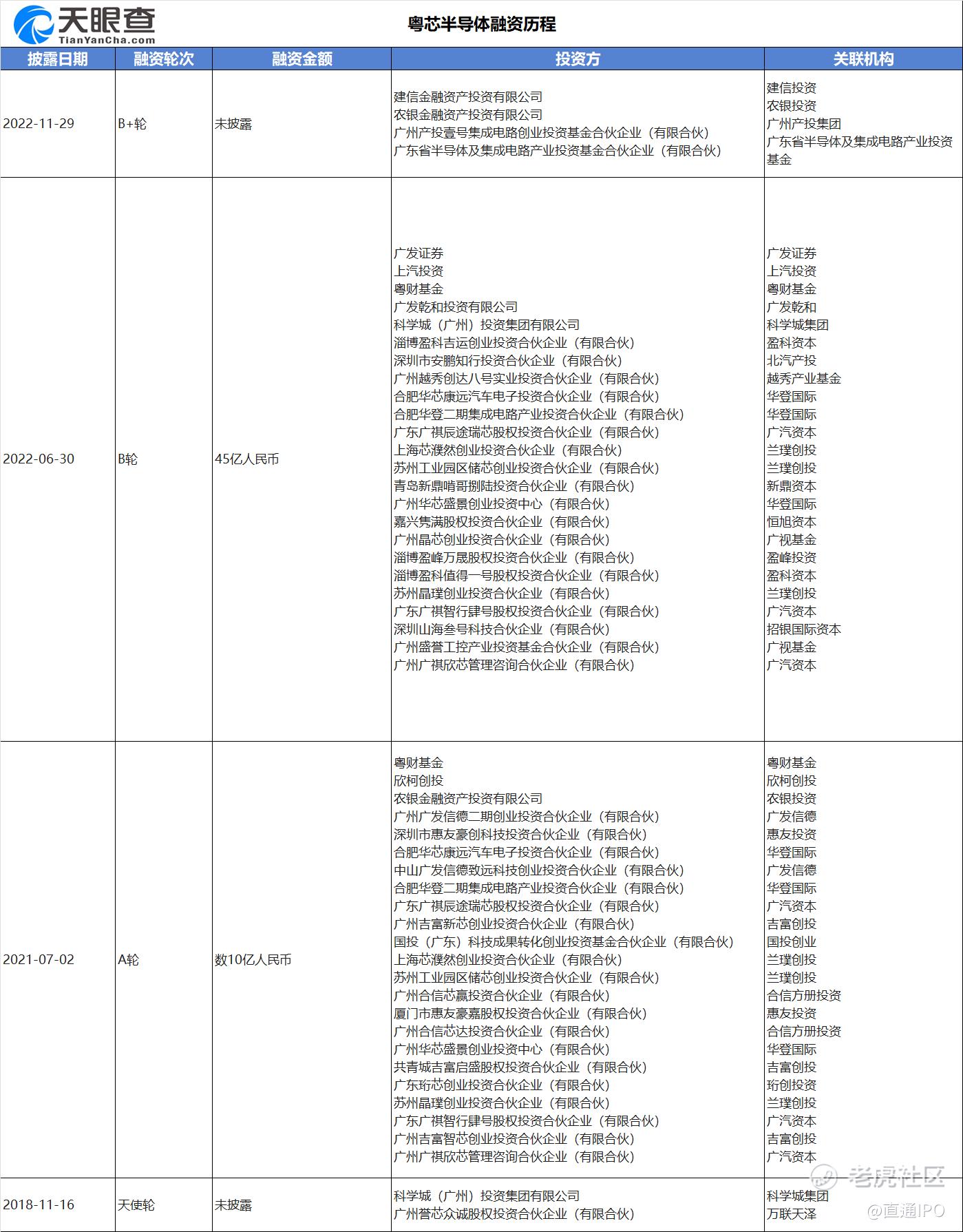 天眼查数据显示,粤芯半导体创立至今已经完成四轮融资,包括数十亿的A轮融资和45亿的B轮融资,背后投资方中包括广州产投、广汽、上汽、北汽、盈科资本、新鼎资本、越秀产业基金、华登国际、兰璞创投等。
