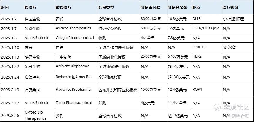 图1:2025第一季度全球ADC交易汇总