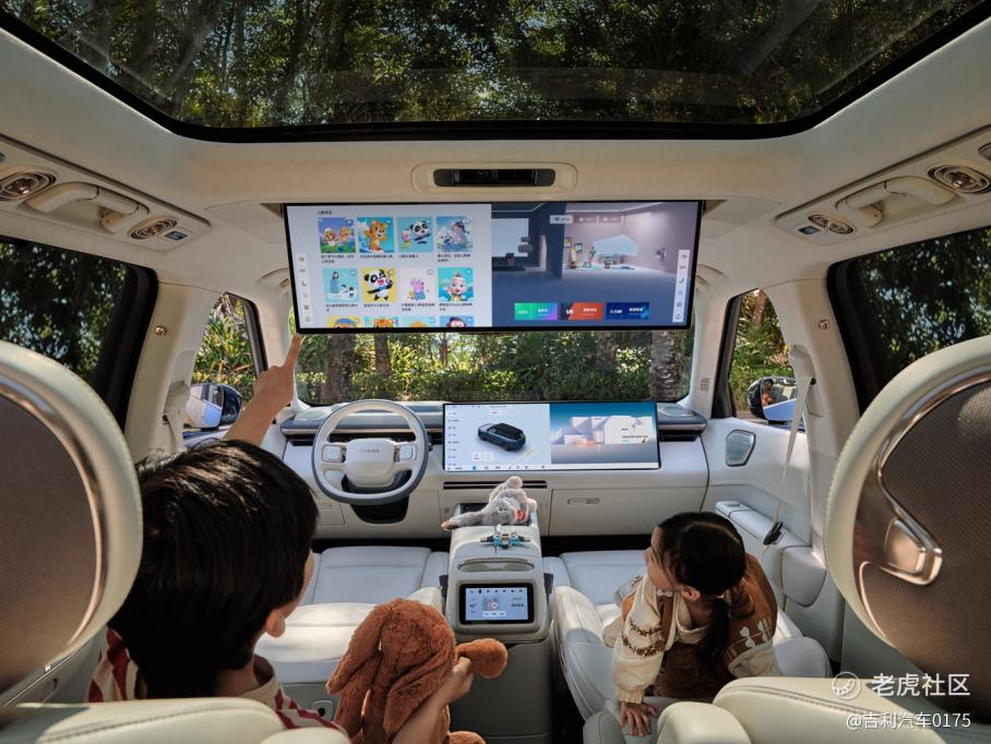 智能座舱上,领克900搭载与魅族联合研发的LYNK Flyme Auto智能座舱系统,以高通骁龙双8295芯片构建算力天花板,驱动30英寸6K一体式主屏、后排30英寸6K悬浮式娱乐屏及95英寸AR-HUD等“八屏互联”,支持跨屏无界流转与手机投屏。独创的3D可视化交互界面与毫秒级响应速度,树立智能座舱流畅度新标杆。分屏功能,让一块大屏能够满足更多家人需求,搭配TÜV莱茵低蓝光护眼认证以及隔空手势,全员无忧共享影音娱乐。
