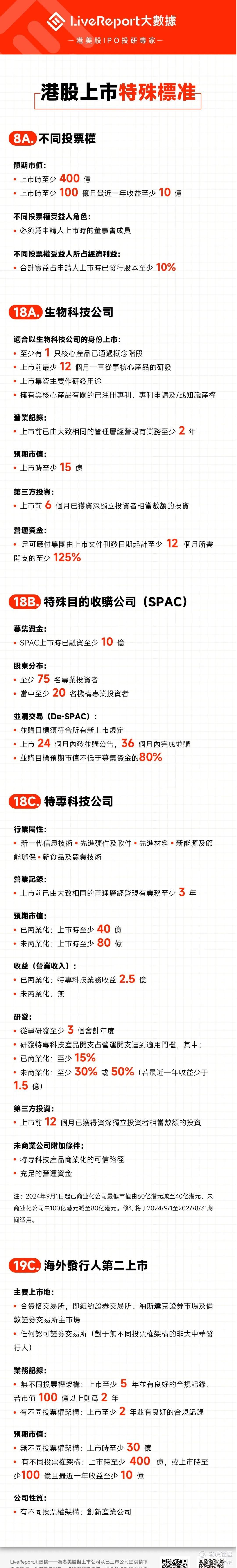 除了常规通用的上市标准,港交所还为特定的企业设置了特殊上市标准,包括第8A、18A、18B、18C、19C章上市制度。那么,第8A、18A、18B、18C、19C章分别是哪些标准?下面来看一看:
