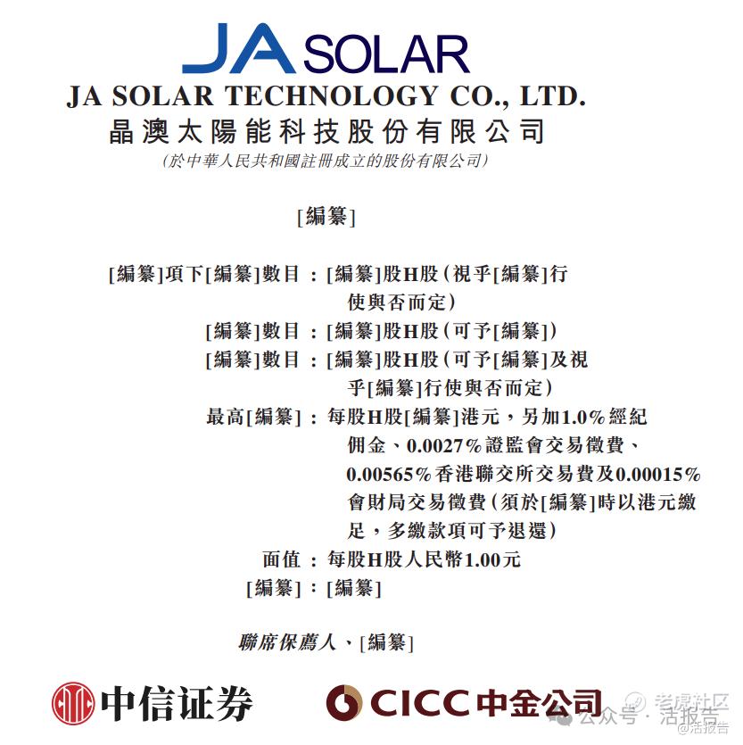 2025年4月28日,晶澳科技首次向港交所递交招股书,拟在香港主板上市,联席保荐人为中信证券及中金公司。