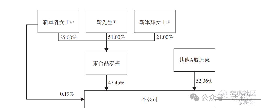 IPO前,公司控股股东东台晶泰福、靳军淼女士合计持股约47.63%。其中东台晶泰福持股约为47.45%(靳保芳先生持有51%,靳军淼女士持有25%,靳军辉先生持有24%),靳军淼女士另再持股约为0.19%。