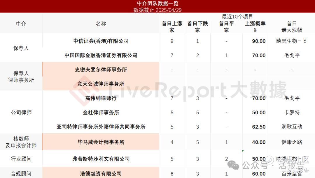 据LiveReport大数据统计,晶澳科技中介团队共计10家,其中保荐人2家,近10家保荐项目数据表现出类拔萃。公司律师共计3家,综合项目数据不算差。