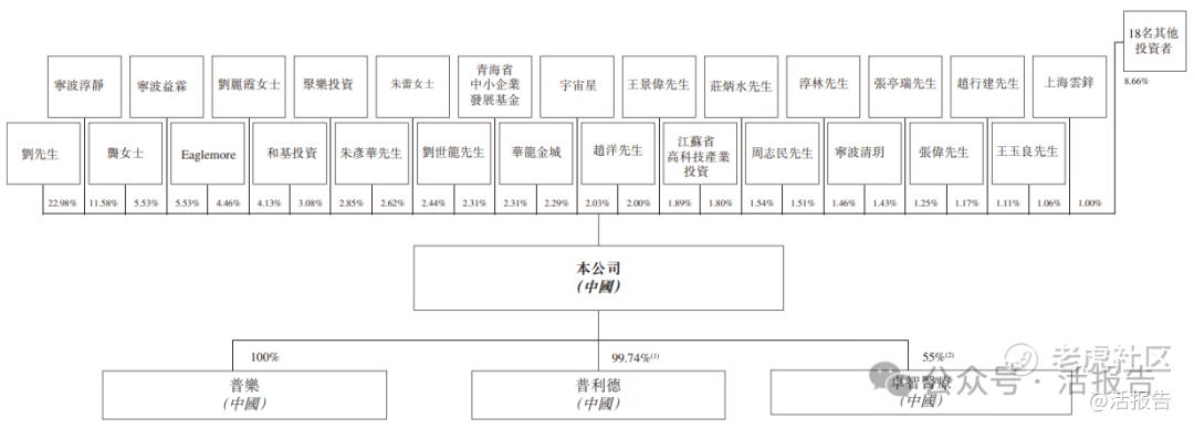 IPO前,一致行动人士(刘先生与龚炯女士、淳林先生、崔春霞女士、聚乐投资、李劲生先生、陆凤辉先生、王景伟先生、张伟先生、赵行建先生、周志民先生、朱彦华先生、Eaglemore、宁波益霖)合计持股约52.50%。