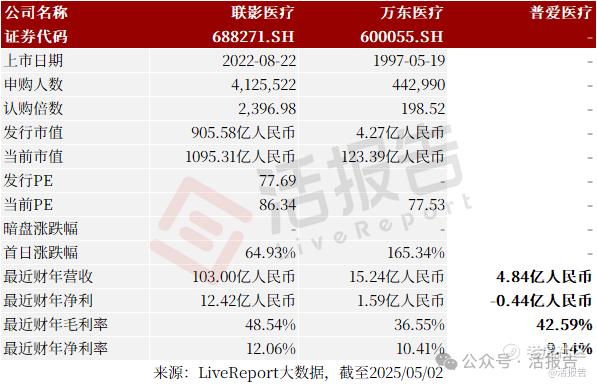 同行业IPO可比公司有:联影医疗、万东医疗