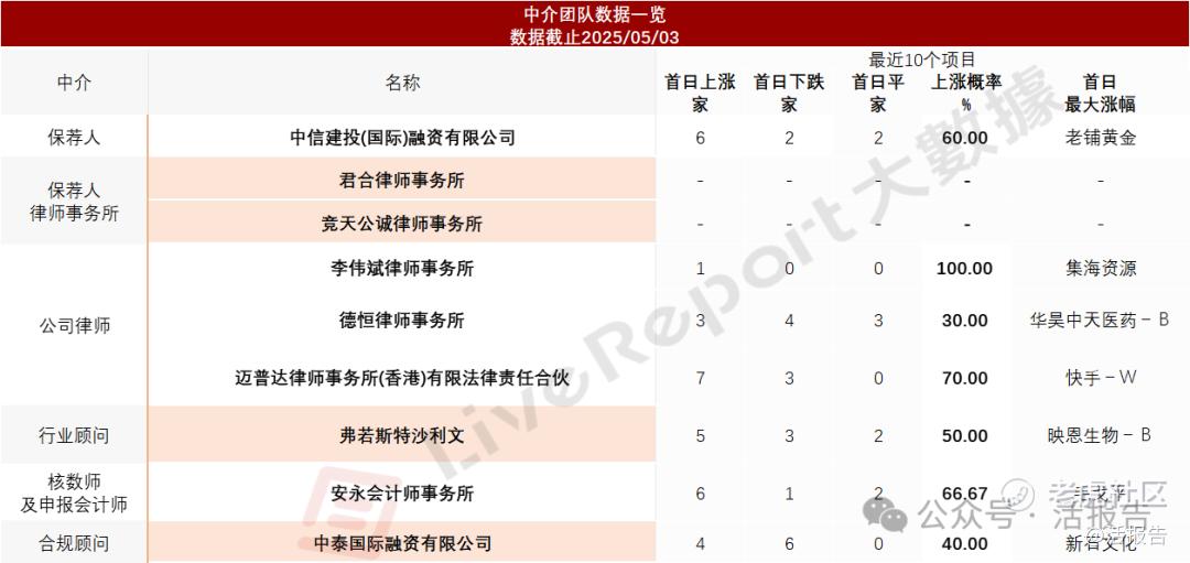 据LiveReport大数据统计,建邦高科中介团队共9家,其中保荐人1家,近10家保荐项目数据表现不错;公司律师共计3家,综合项目数据表现超出预期。整体而言中介团队表现尚可接受。