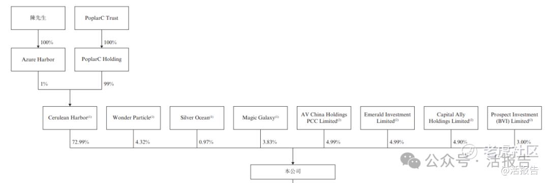 公司董事会主席、执行董事兼首席执行官陈子淳先生分别通过Azure Harbor及PoplarC Trust间接控制72.99%的股权。