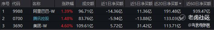 从南向资金近20日净流入额最大的前三标的来看,都是恒生互联网的最大成分股,阿里、腾讯、美团。