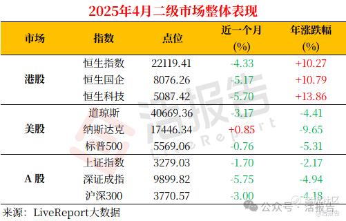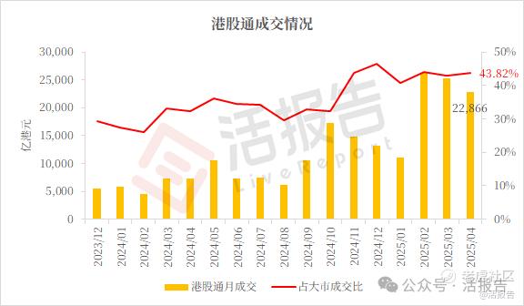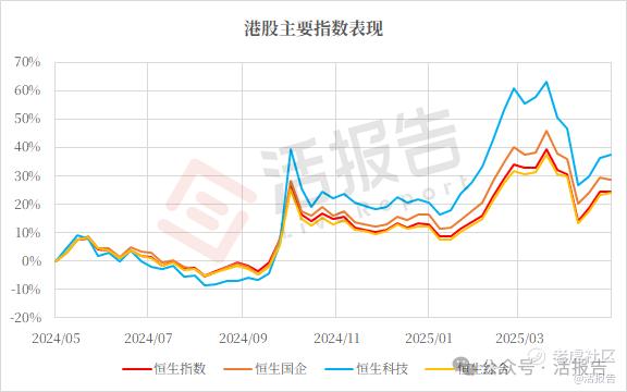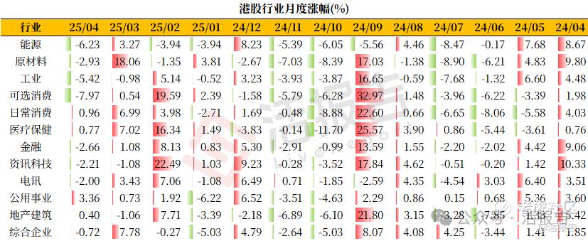 2025年4月,港股恒指、国指、恒科涨幅分别为-4.33%、-5.17%、-5.7%,年内分别累涨10.27%、10.79%、13.86%。受关税冲击影响,港股于4月7日创下亚洲金融危机以来最大单日跌幅,但随后持续反弹收复失地。