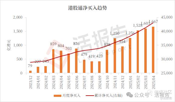 据LiveReport大数据统计,港股通渠道在4月份净买入超过1666亿港元,继续刷新历史月度净买入新高,今年以来累计净买入已超6000亿港元。4月9日,港股通单日净买入达356亿港元,刷新历史单日净买入记录。