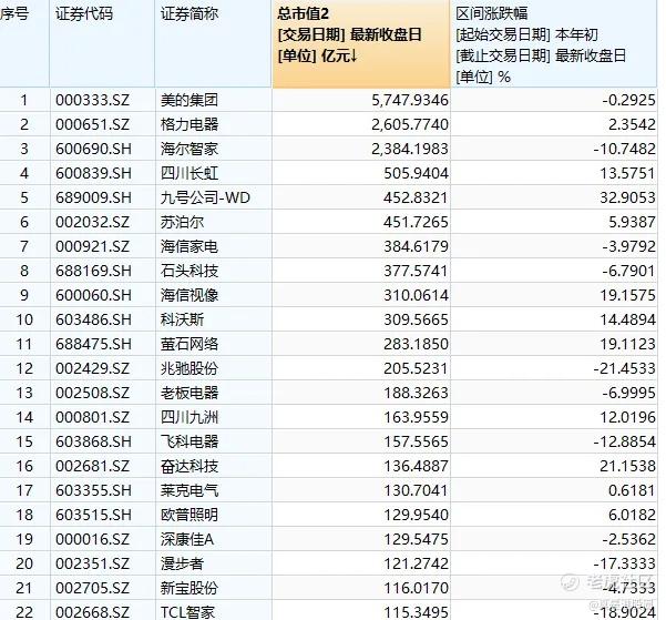 只可惜,市场的态度是,火热背后,无非是靠国家补贴,不长久,低质量,家电板块今年表现并不好,业绩也根本没有帮助到业绩。家电板块今年整体涨幅接近0%,落后于消费板块。