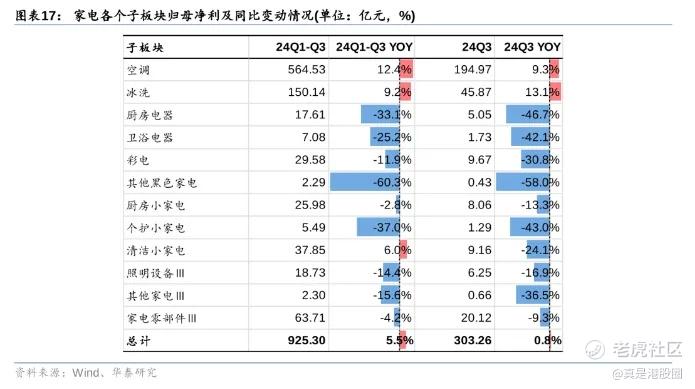 现在看到出海的状况是,在大件电器领域加速,吃到疫情红利的小家电,反而增速边际有下来了。因为从分类来看,白电增速最高,达到23%,所以,家电巨头们的业绩繁荣背后,是本身就出海获得巨大增量,同时国内业务复苏,产生加速,这完全解释了24年Q3至今,增速从10%到20%的变化。