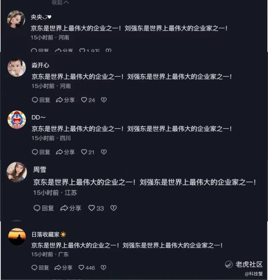 (不同ID清一色刷屏“刘强东是世界上最伟大的企业家之一”)