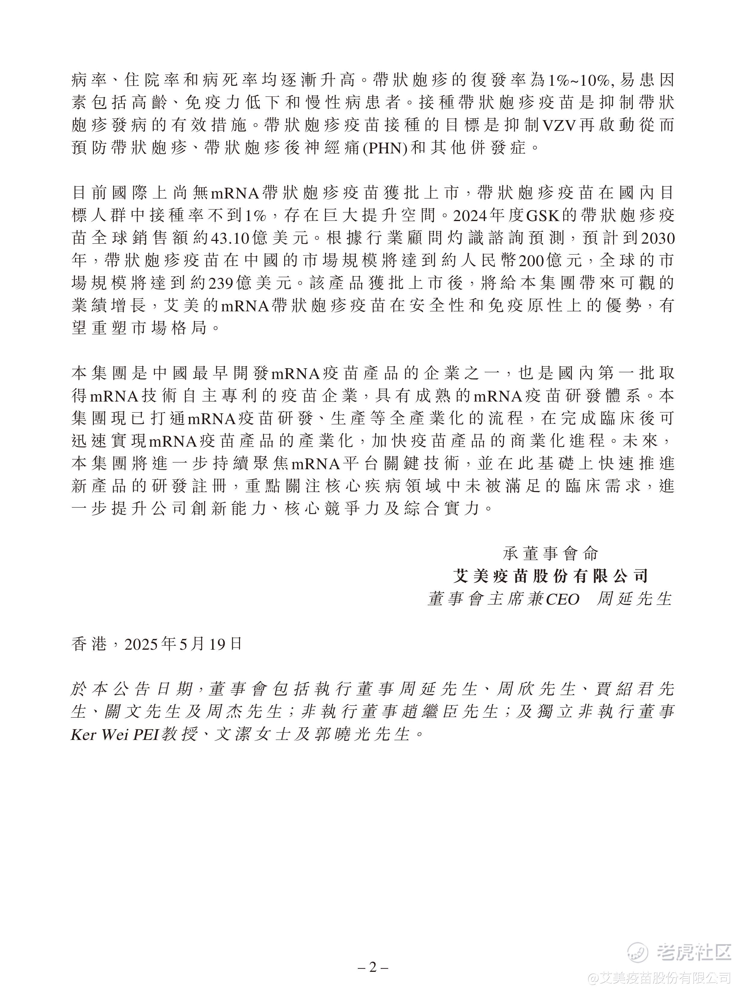 艾美疫苗中美双报迭代mRNA带状疱疹疫苗均获批开展临床 其体液免疫、细胞免疫显著高于国际标杆产品
