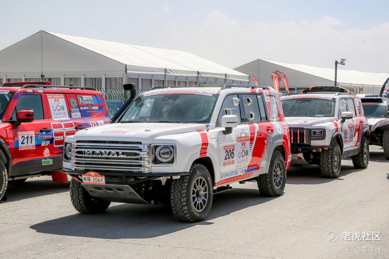 发车仪式现场,气氛热烈非凡,长城环塔车队以完整的阵容亮相发车台。三大品牌共计 10 辆赛车整齐排列,20 名车手与领航员精神抖擞、意气风发,先后登台发车,这一壮观景象成为了环塔历史上国内车企最具规模的出征阵容之一。