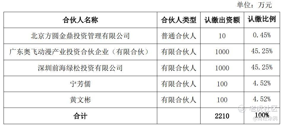 《财经涂鸦》获悉,5月20日,奥飞娱乐(002292.SZ)发布公告称,为推进“IP+AI” 战略及产业应用落地,充分借助专业投资机构的能力,公司全资子公司广东奥飞动漫产业投资合伙企业(有限合伙)拟与北京方圆金鼎投资管理有限公司(“北京金鼎”)、深圳前海绿松投资有限公司以及宁芳儒、黄文彬共同签署《共青城植钰股权投资合伙企业(有限合伙)合伙协议》,向共青城植钰股权投资合伙企业(有限合伙)认缴出资人民币1000万元,占合伙企业认缴出资总额的45.25%。