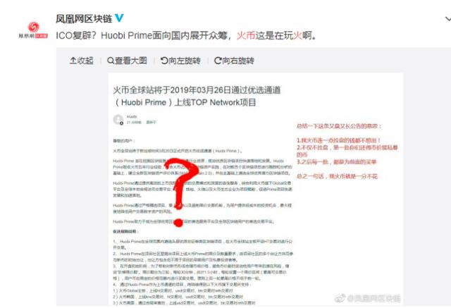3月20日上午,火币数字货币交易所CEO翁晓奇发布公告,称火币全球站将于3月26日上线火币 Prime首个项目TOP-Network。火币Prime在事实意义上为一种变相的IEO行为,且无论币涨币跌,对于火币而言,这都是一门稳赚不赔的生意。然而,面对火币精心策划的预热,投资者们却并不买账,大部分人持有质疑态度。