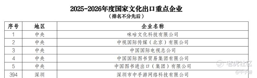 5月27日,国家商务部服贸司发布了《关于2025-2026年度国家文化出口重点企业和重点项目的公告》,这也是继2021年、2023年入选年度国家文化出口重点企业名单后,中手游再次成功入选国家文化出口重点企业。