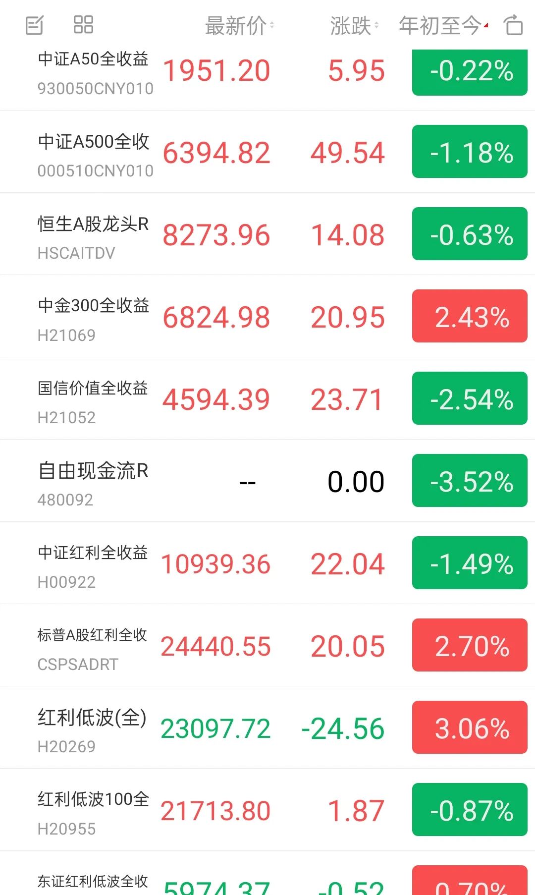 今年以来的收益,中金优选300指数和东证红利低波指数仍然为正收益。