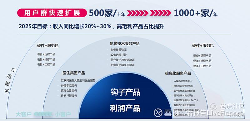 通过客户分层服务策略,利用不同量级的产品快速拓展用户群体,目标是在未来十年内实现客户数量从500+到1000+的跨越,同时提升高毛利产品的销售占比。