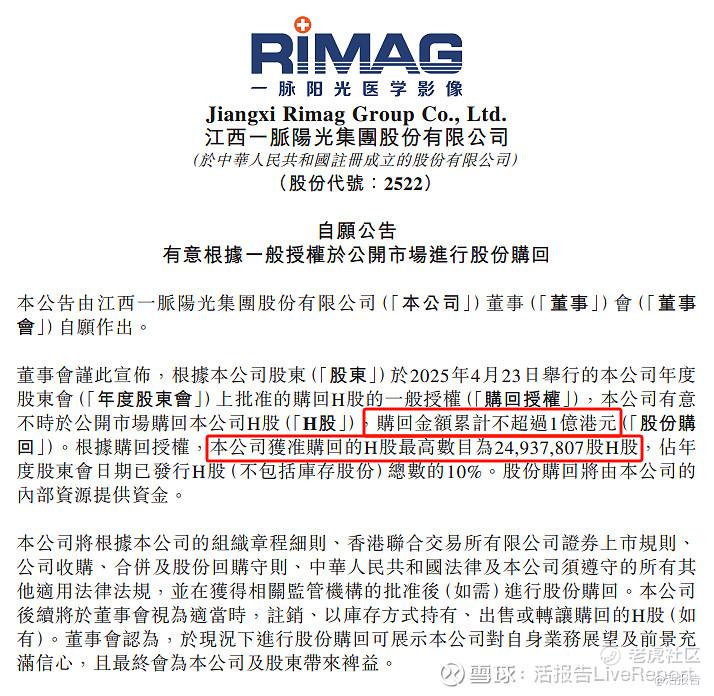 2025年5月16日,一脉阳光公告称,公司有意不时于公开市场购回本公司H股,购回金额累计不超过1亿港元。根据购回授权,公司获准购回的H股最高数目为24,937,807股H股,占已发行H股的10%。