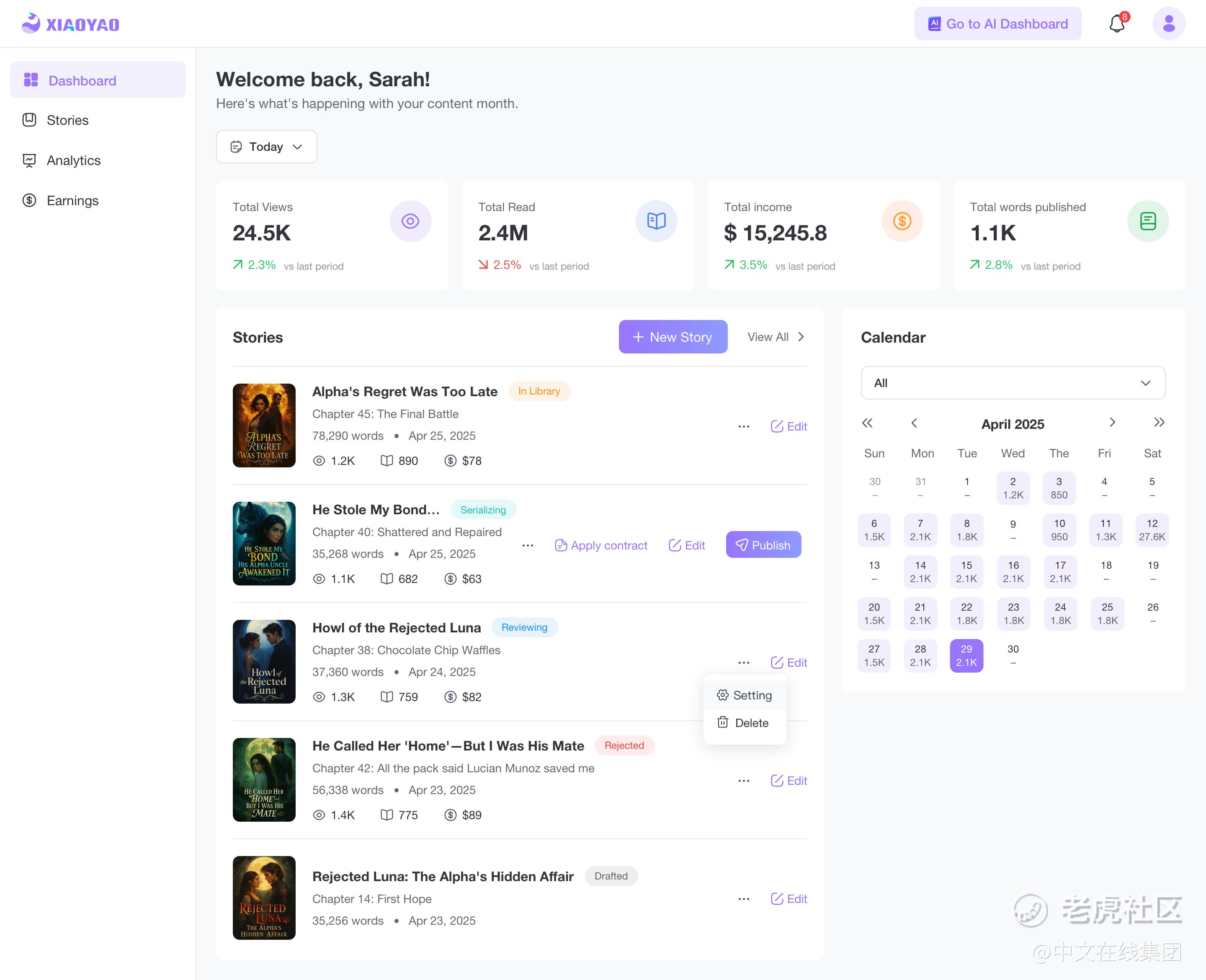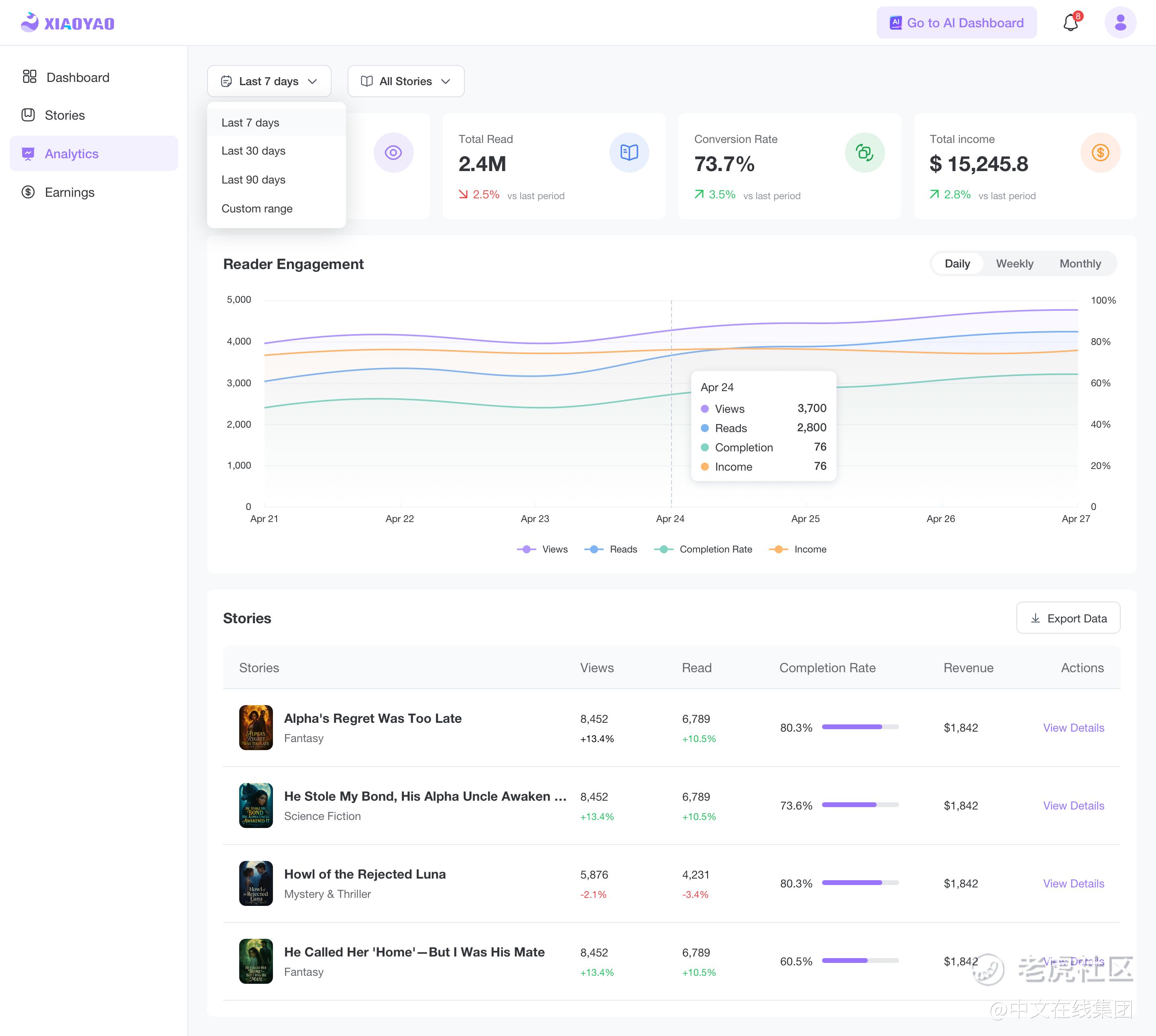三是签约与分发机制透明高效。 签约后,平台提供全球推广与版权服务,涵盖多个海外内容平台,帮助作者精准触达读者、提升收益。