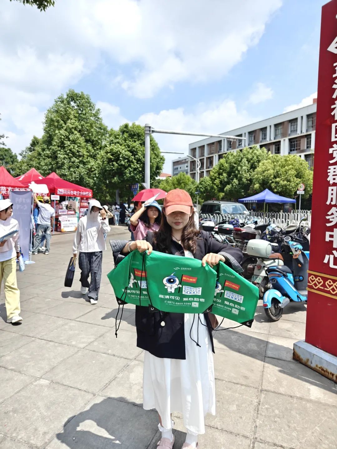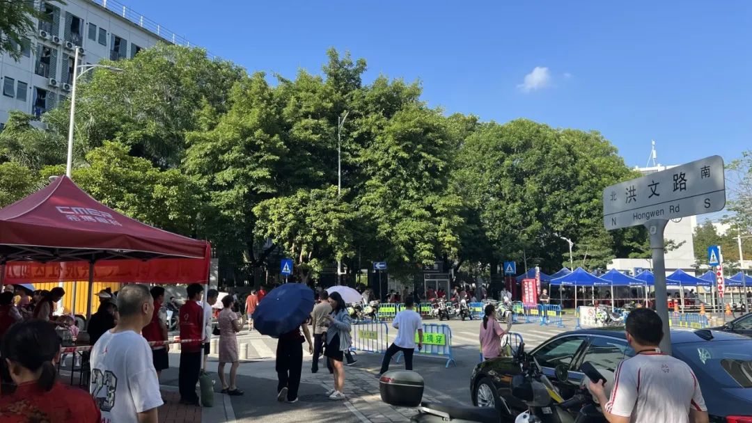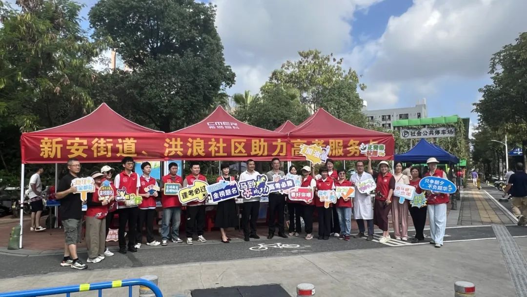 高考首日清晨,各院志愿者团队奔赴多地考点,搭建起印有希玛标识的"爱心助考服务站"。鲜红的帐篷为考生及家长提供临时候场休息区,志愿者持续发放矿泉水、防暑药品、文具等应急物资,同时协助疏导考点周边人流,保障考场秩序安全有序。在持续高温的天气里,一抹抹"希玛红"为陪考家长撑起清凉屏障,多家分院更向社区捐赠遮阳设备,强化服务站后勤保障。