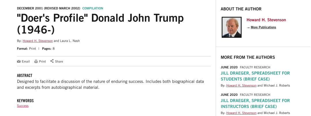 早在2001年,哈佛商学院就已将特朗普纳入其案例研究系列,与前总统吉米·卡特和“美国报业第一夫人”凯瑟琳·格雷厄姆等传奇人物并列,足以显示出他身上具备超越普通商人的特质。