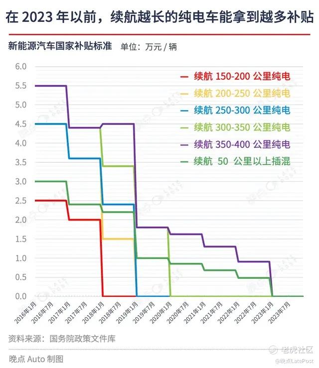 2022 年 12 月底,持续 13 年的新能源国补政策终止。国补政策早期更多在鼓励纯电车型发展,这体现在大部分纯电车型的单车补贴金额高于插混及增程车型。彼时,市场对纯电路线也更为推崇,认为其是未来发展方向。但是,到了 2018 年以后,由于国补政策不断调整,续航里程较低的纯电车型不再享受补贴。