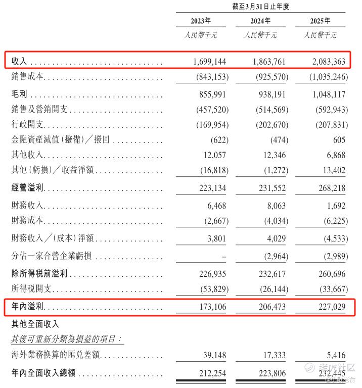 公司从2023~2025年截止3月31日的年营收分别是16.99亿、18.64亿、20.83亿,2025年营同比增长11.78%;2023~2025年截止3月31日的年净利润分别是1.73亿、2.06亿,2.27亿,2025年的净利润同比增长9.96%。