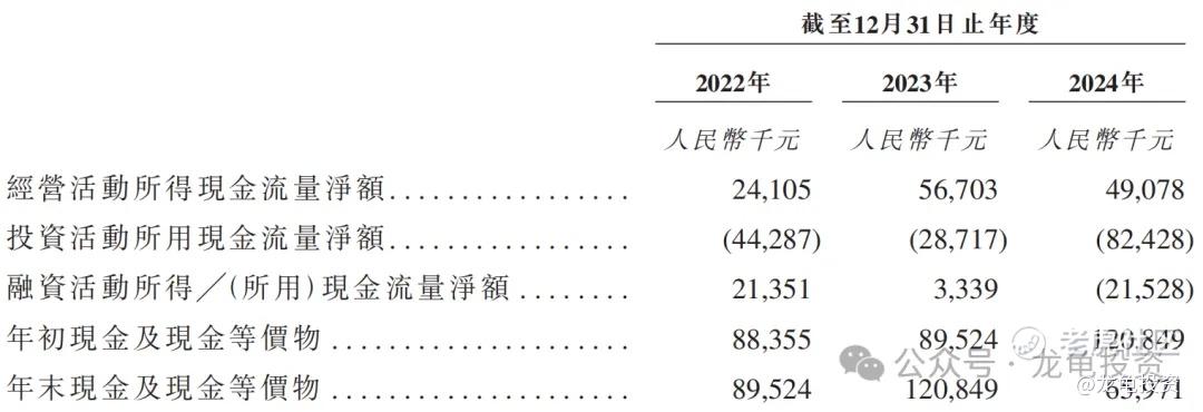 公司年未现金及现金等价物2022年8952.4万人民币,2023年1.21亿人民币,2024年6597.1万人民币;现金流较上一年减少5000多万!