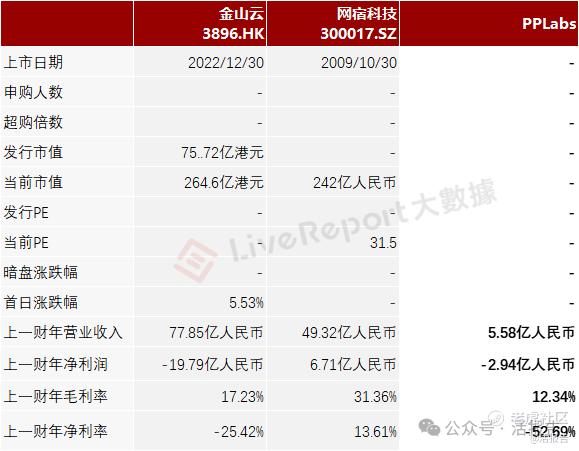 本次选取的同行业对比公司为:金山云(3896.HK)、网宿科技(300017.SZ)
